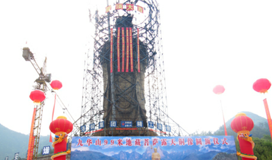 2011年5月16日上午,备受社会各界关注的九华山99米地藏菩萨露天大铜像圆顶仪式隆重举行。